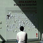핀란드 현대 미술관 Kiasma contemporary art museum 에 가보았다. 위치는 여기 ! Mannerheiminaukio 2, 00100 Helsinki, Finland kiasma 미술관 전경 입구에 걸려있는 hand signature 작품들은 사진이나 촬영이 불가한 관계로.. 눈으로만 감상 테라스 밖으로 보이는 풍경 입장객에게 이렇게 작은 종이에 그려 붙여놓으면 페북이나 트위터에 걸어주겠다고 한다.. 나도 하나 그려서 여기 어딘가에 붙여 놓았다 좋아하는 사진 바로 옆에 있는 국회의사당으로 갔다. 국회의사당서에는 큰계단이 높게높게 있어서 올라가면 탁트인곳에서 꾀 멀리까지 볼 수 있었다. 집으로 돌아와서.... 130707